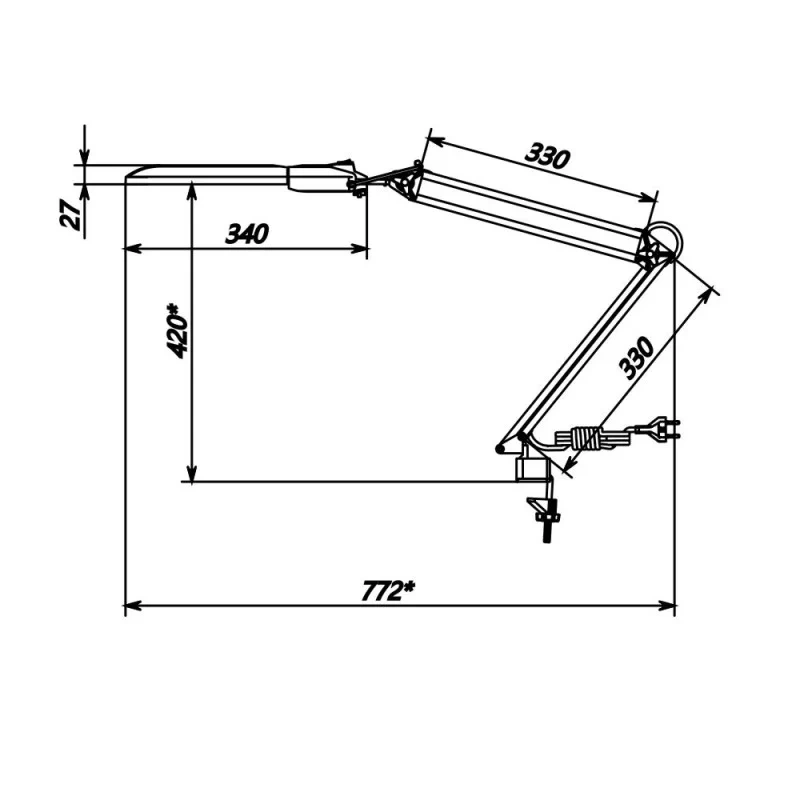 Светильник настольный Трансвит Дельта черный, на струбцине, люминесцентный