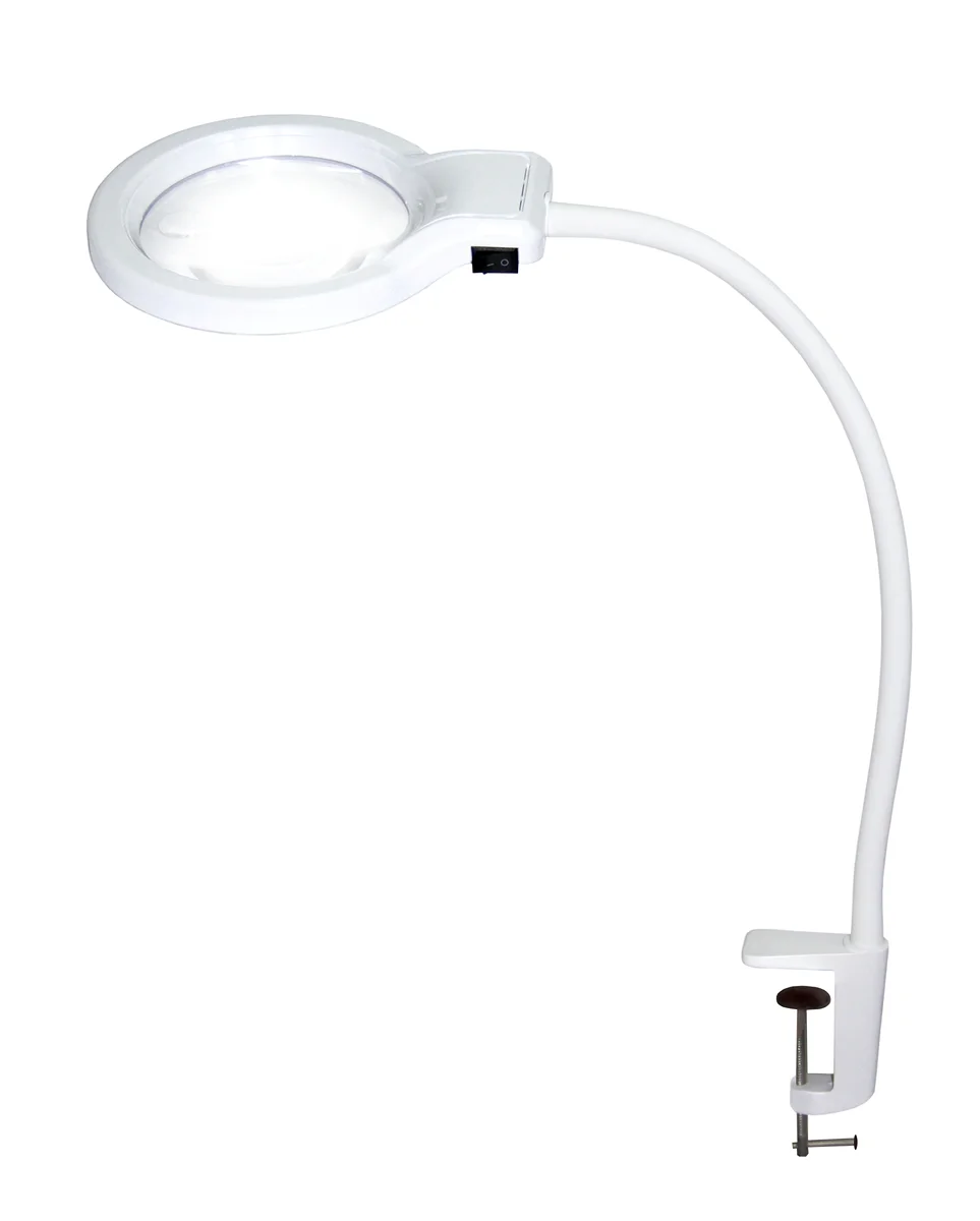 Светодиодный светильник «Леда С20» с увеличительной линзой предназначен для работы с мелкими деталями: для рукоделия, творчества, для различной работы в салонах красоты, для работы в ювелирных и часовых мастерских. Благодаря гибкой стойке, светильник сохраняет свою подвижность и вариативность в размещении плафона, не занимая, при этом, много места. Светильник комплектуется металлической струбциной, конструкция которого предполагает крепление на любой горизонтальной или вертикальной поверхности толщиной до 60 мм. - Гибкая стойка. Экономит место на рабочем столе, позволяет настраивать положение линзы так, как Вам удобно. - Линза с увеличением 2D и дополнительным 9D. - Бестеневой светильник. - Диаметр линзы 127 мм. - высокая экономичность-экономия до 90% электроэнергии; - отсутствие мерцания и шумов, исключена зрительная усталость; - отсутствие пульсаций светового потока; - приятный яркий качественный свет (естественный спектр освещения); - Мощность источника света, Вт – 8; - Световой поток, Лм- 750; - Цветовая температура, К -4000; - Индекс цветопередачи - не менее 80; - Производитель светодиодов - LG; - Степень защиты- IP20; - Цвет - белый