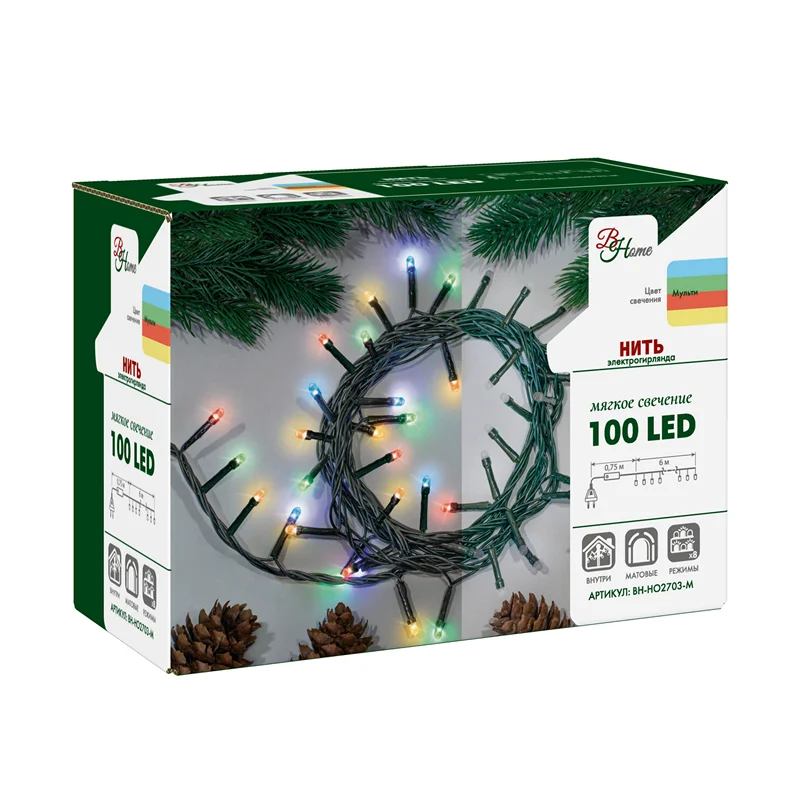 Гирлянда B & H электрическая нить разноцветная 100 ламп, 6 м