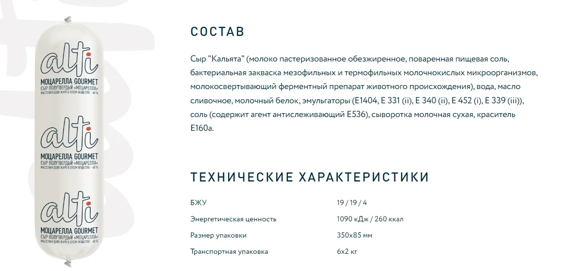 Сыр Alti Mozzarella Gourmet для пиццы 40%, 2кг БЗМЖ – высококачественный молочный сыр, производимый в Италии. Идеально подходит для приготовления пиццы.