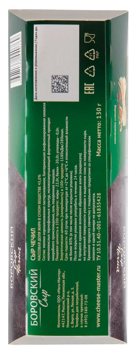 Производится по традиционному кавказскому рецепту из свежего коровьего молока. Обладает в меру соленым вкусом с легким кисломолочным оттенком. Отличается оригинальным узнаваемым внешним видом: имеет форму длинных белых жгутиков с плотной, но эластичной текстурой. Чечил хорош как в самостоятельном виде, так и в сочетании с изысканными винами. Может использоваться для приготовления легких салатов и закусок, а также для украшения сырной тарелки. Изготовлен на современном предприятии из первоклассного сырья, прошедшего строгие проверки качества. Сливочный чечил прекрасно дополняет пенные напитки, а также используется в некоторых салатах.
