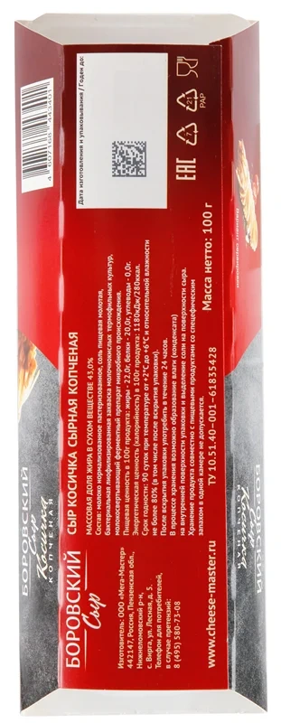 Сыр Боровский сыр косичка копченый 43%, 100г