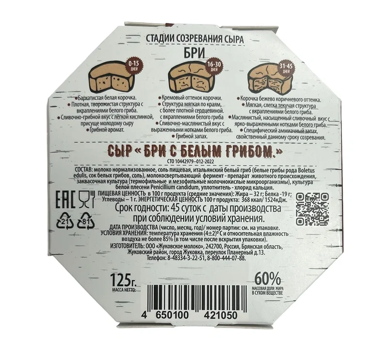 Сыр бри Whitecheese from Zhukovka с белыми грибами 60%, 125г