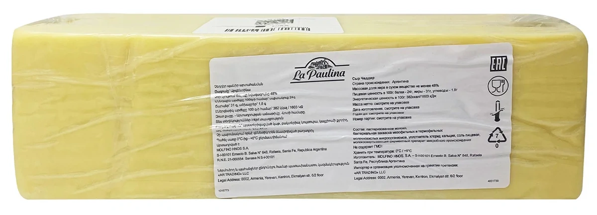 Сыр чеддер La Paulina 48%, ~2.5кг