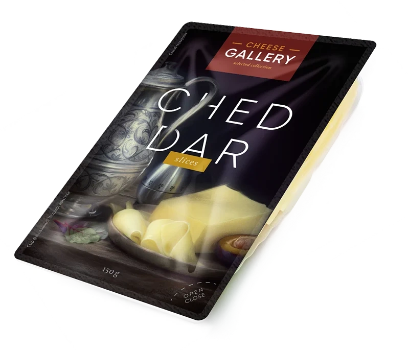 Cheese Gallery Cheddar – классический сыр с ореховым, слегка островатым вкусом. Этот продукт не оставят равнодушными даже тех, кто не считает сыр главным блюдом на своем столе. Удивительные и гастрономические сочетания создает со свежими овощами, блюдами из фасоли, горчицей, сметаной, винным или бальзамическим уксусами. Тонкие слайсы удобно использовать как для бутербродов, сэндвичей и канапе, так и для пиццы, питы и запекания.