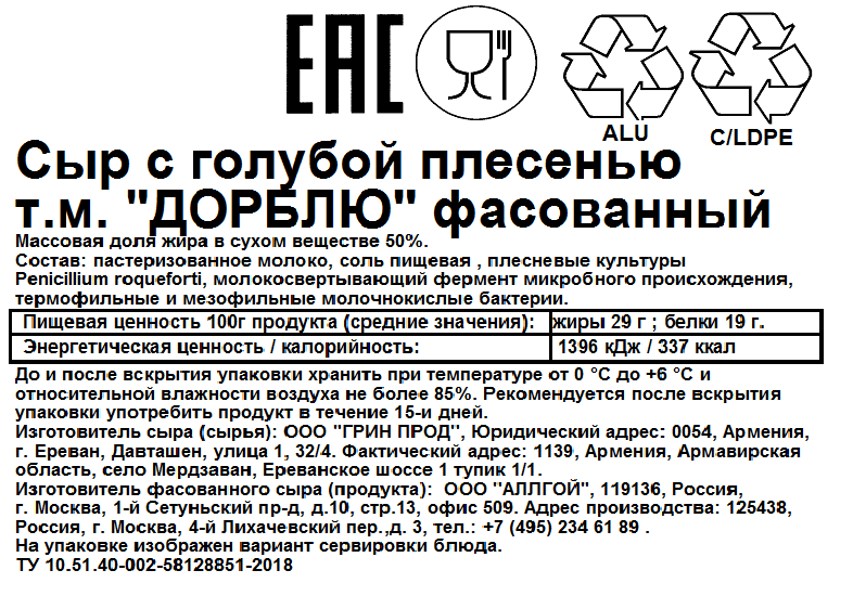Сыр Dorblu Classic с голубой плесенью 50%, ~650Г