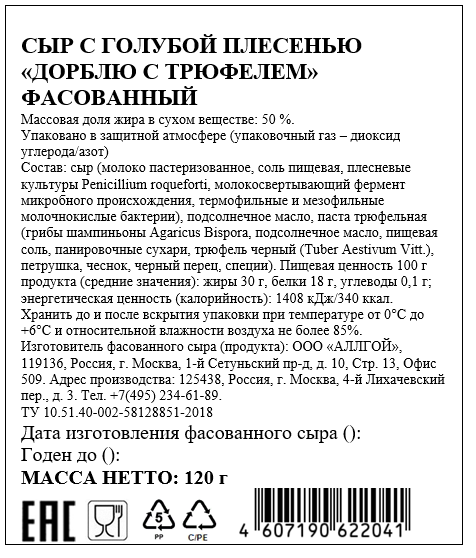 Сыр Dorblu с голубой плесенью и трюфелем 50%, 120г
