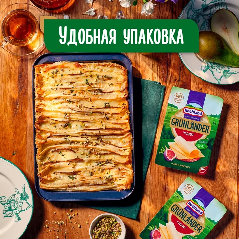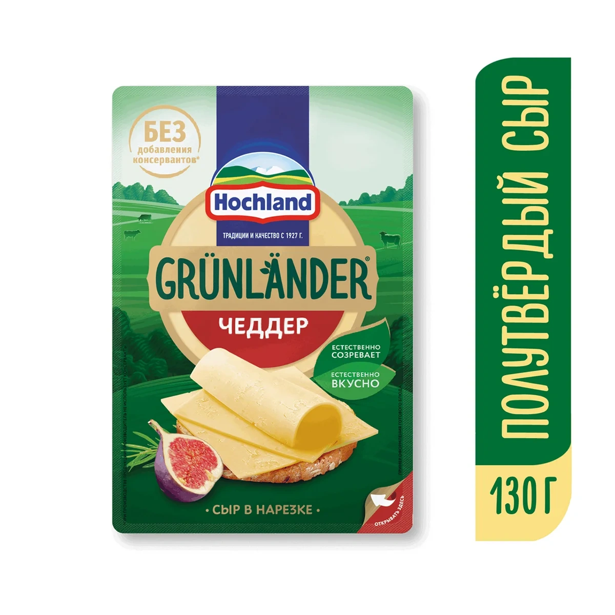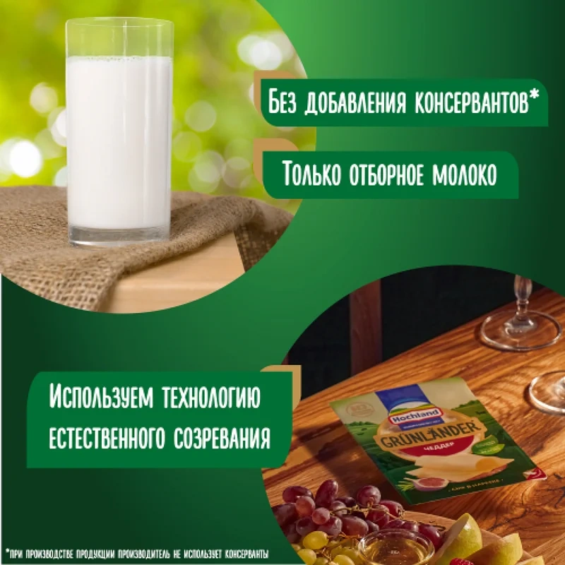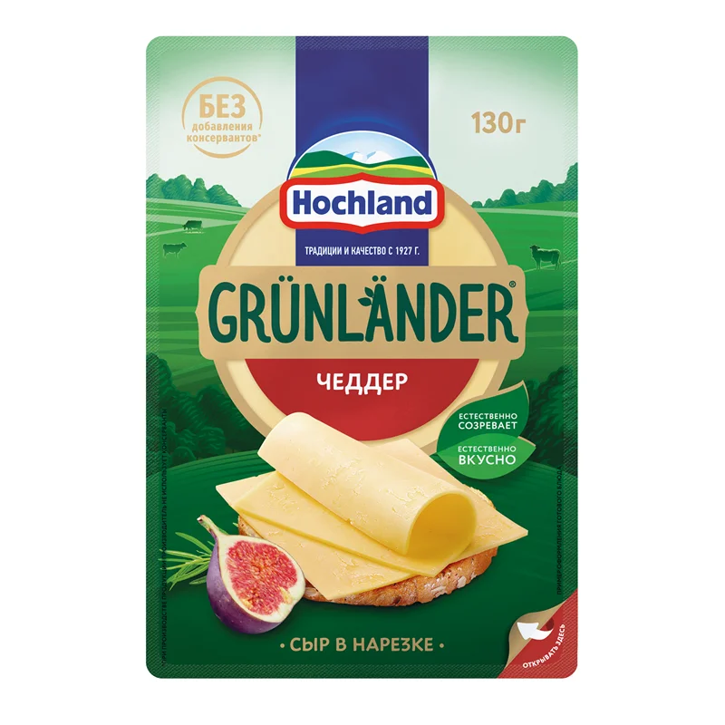 Сыр Hochland Grunlander Чеддер полутвердый нарезка 50%, 130г