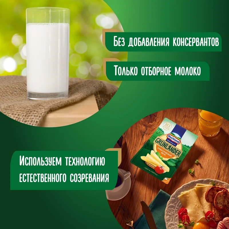 Сыр Hochland Грюнландер классический в нарезке 50%, 130г