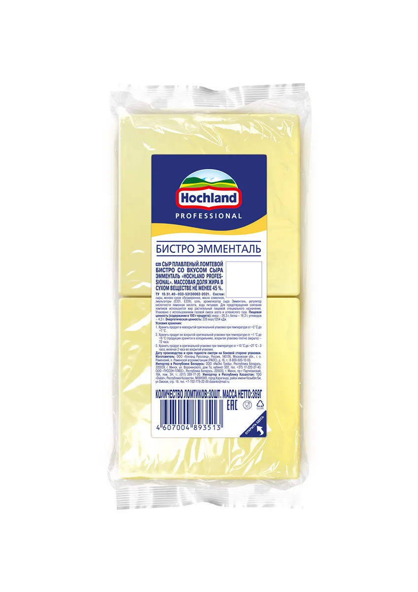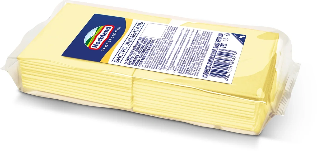 Сыр Hochland Professional Бистро Эмменталь плавленый ломтики 45%, 369г