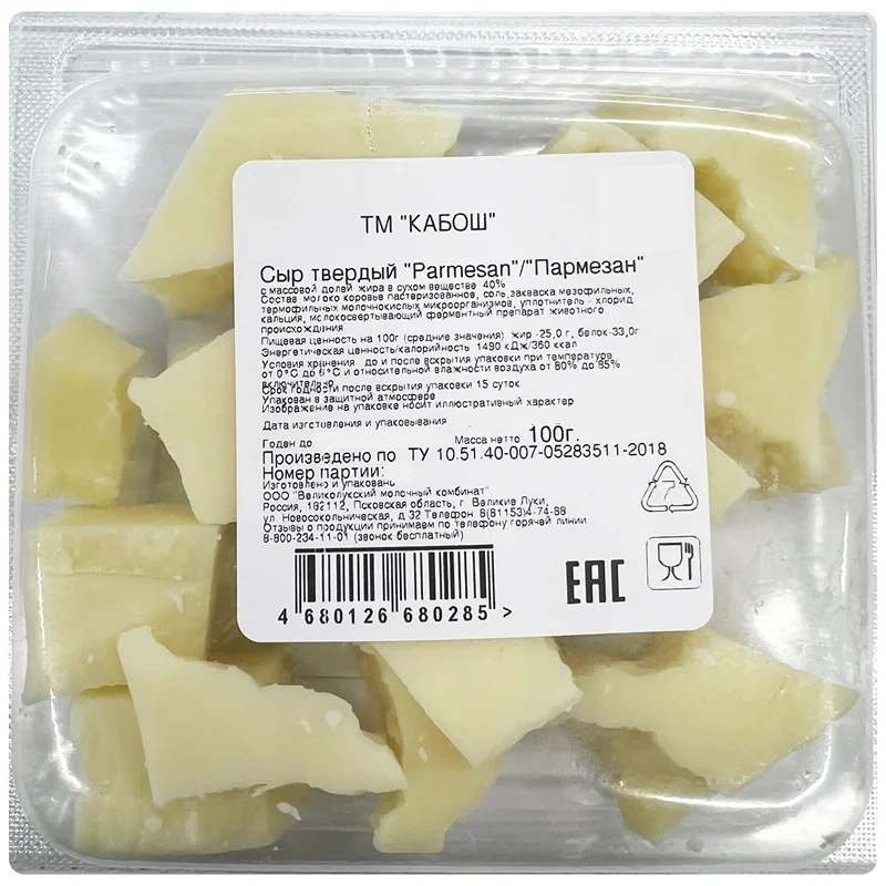Сыр Кабош Пармезан твердый колотый 40%, 100г