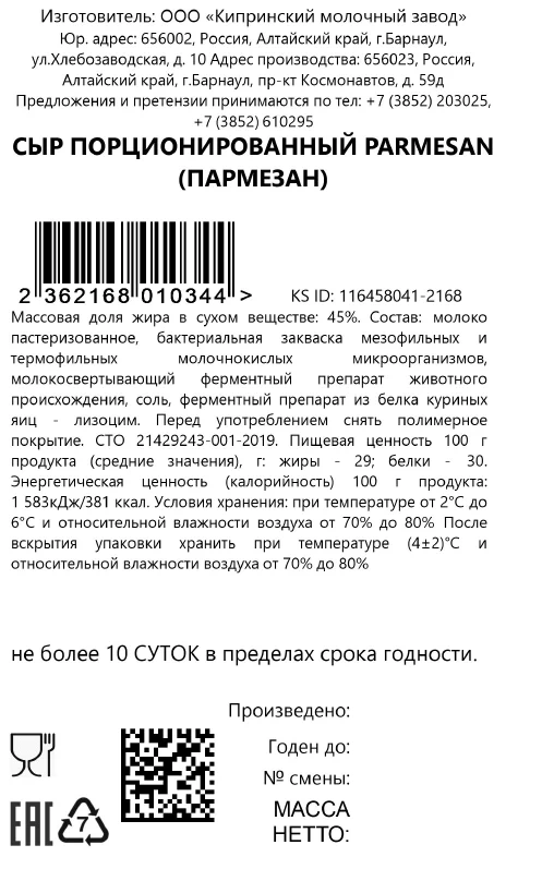 | Сорт | пармезан |