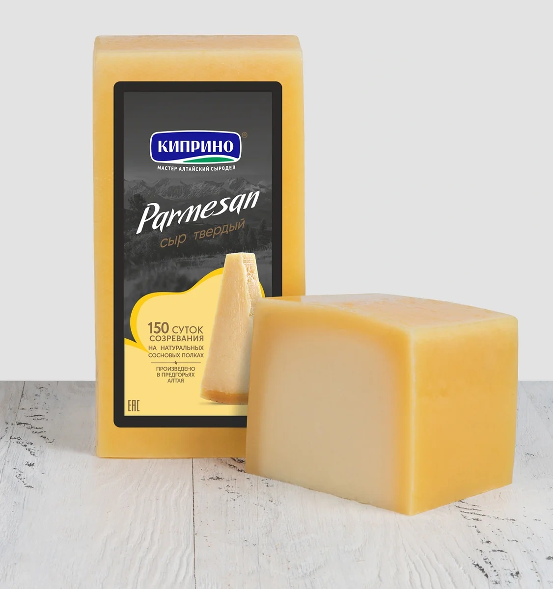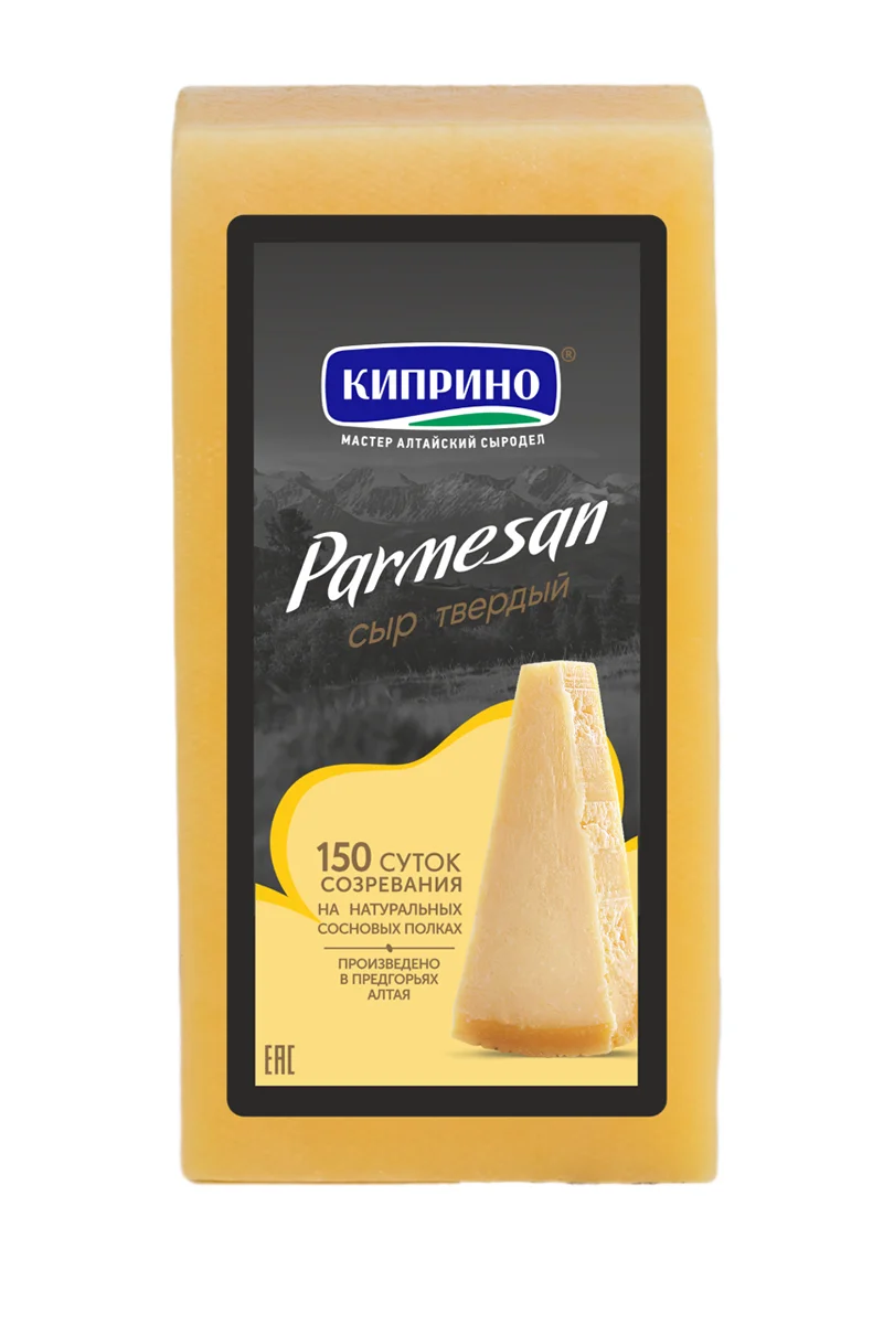 Сыр Пармезан торговой марки Киприно - твердый сыр с итальянскими корнями. Срок созревания данного сыра - 6 месяцев, благодаря чему он имеет плотную консистенцию без рисунка, пикантный вкус и глубокий аромат с нотками лесного ореха. Пармезан употребляется как самостоятельное блюдо или используется в виде добавок к пасте, пицце, супам и салатам. Будет прекрасным дополнением к красному вину на праздничном столе. Обладает приятным, слегка солоноватым вкусом и характерным ароматом. Его плотная текстура и легкая острота делают его идеальным ингредиентом для множества блюд. Пармезан отлично подходит для добавления в салаты, супы, пасту, ризотто и пиццу, а также для приготовления сырных соусов и запекания. Он также прекрасно дружит с медом, грушей и грецкими орехами, создавая неповторимые вкусовые сочетания.