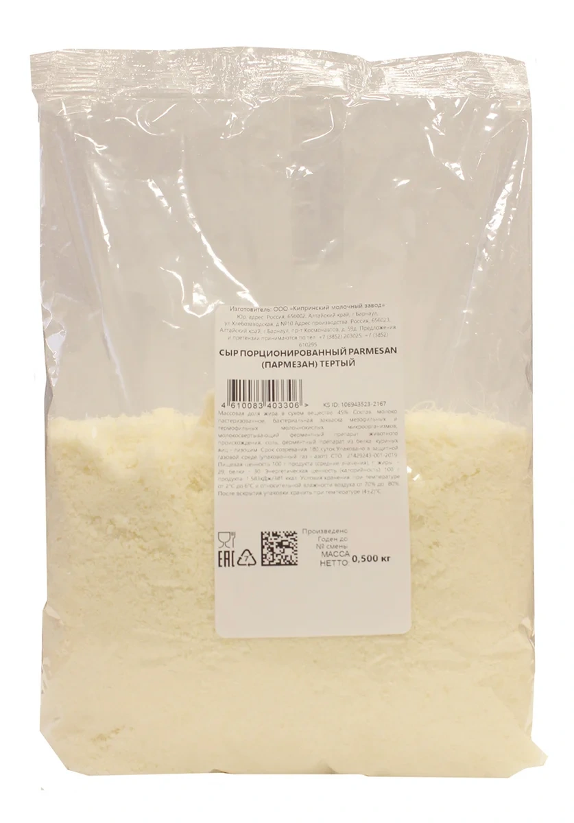 Сыр Parmesan торговой марки Киприно - твердый сыр с итальянскими корнями. Срок созревания данного сыра - 9 месяцев, благодаря чему он имеет плотную консистенцию без рисунка, пикантный вкус и глубокий аромат с нотками лесного ореха. Пармезан употребляется как самостоятельное блюдо или используется в виде добавок к пасте, пицце, супам и салатам.