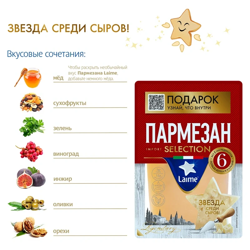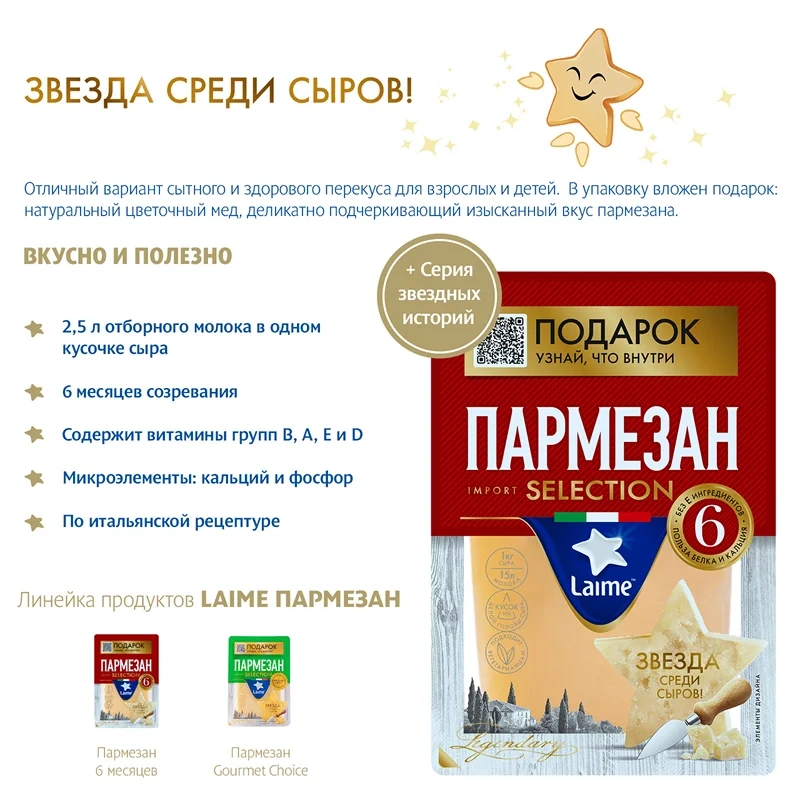 Сыр Laime Пармезан твердый- высококачественный сыр, изготовленный из молока коров с доброкачественными бактериями. Содержит не только полезные пробиотики, но и витамины А, В2, B12, РР. Помимо всего прочего, сыр обладает приятным вкусом и ароматом.