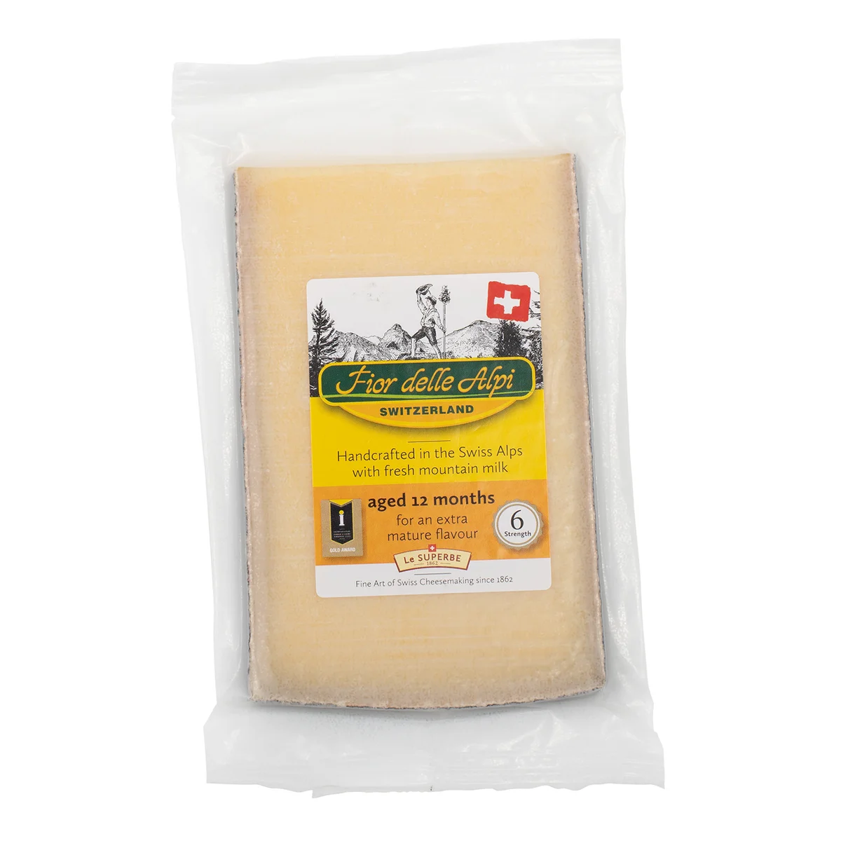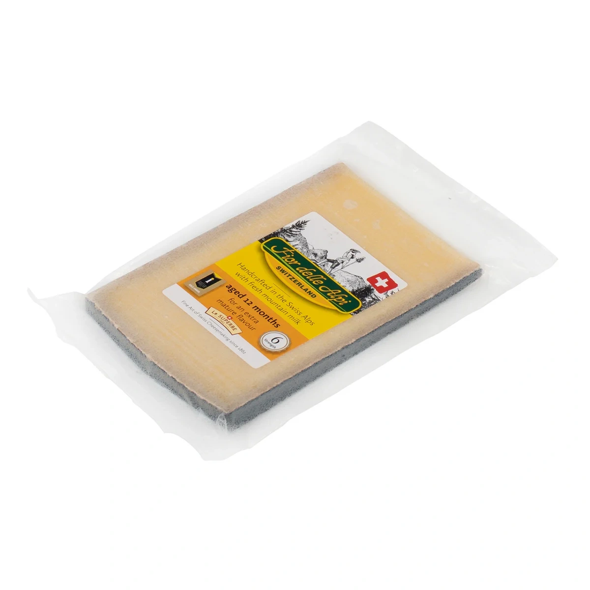 Свежий и чистый воздух, земля с богатой растительностью, горное молоко чистейшей природы и истинные сыровары - все это привело к появлению сыра Fior delle Alpi. Сокровище швейцарских гор, спрятанное под черной коркой. Сыр Fior delle Alpi абсолютно уникален: в нем сочетается аромат деревенского молока и вкус мелких крупинок соли, тающих во рту. Роскошные пастбища с богатой растительностью придают свежему горному молоку непередаваемую пикантность и насыщенный аромат. Горный туман окутывает сыроварню, где сыр Fior delle Alpi вручную изготавливается по старинным рецептам. Только при пристальном внимании сыроваров и тщательной выдержке в погребах на протяжении 10 месяцев достигается настоящий вкус уникального сыра Fior delle Alpi.