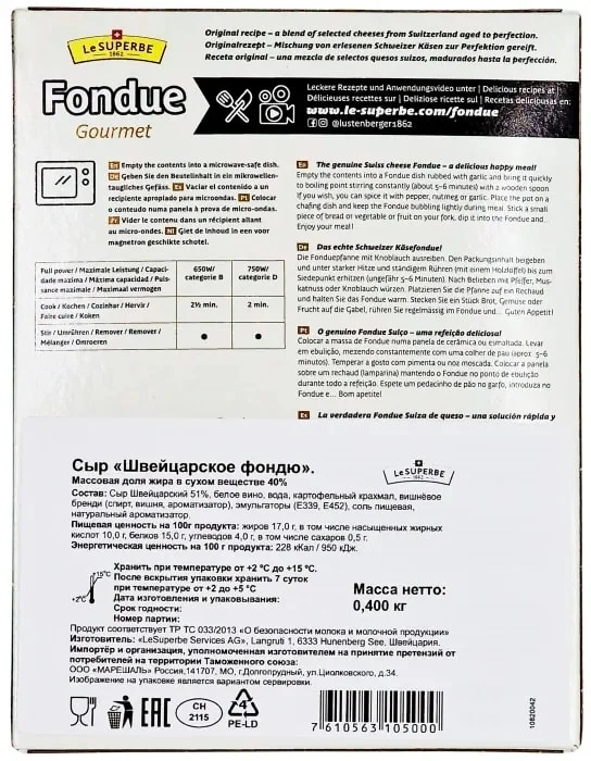 Сыр Le Superbe Swiss Gourmet для фондю полутвердый 40%, 400г