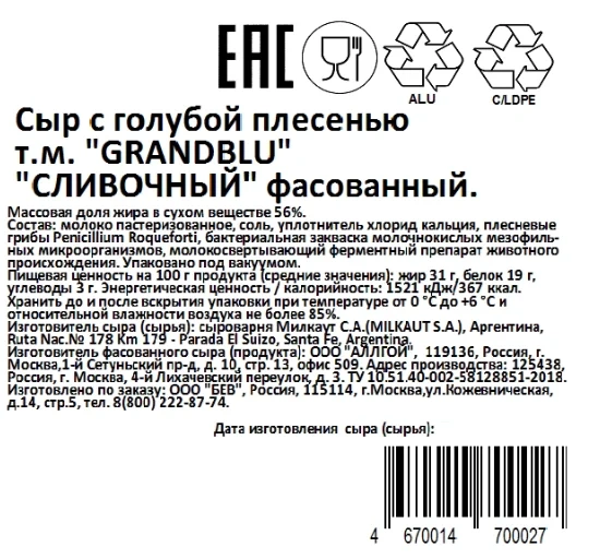 GrandBlu Creamy на вашем столе сразу создаст атмосферу праздника! Его тающая сливочная текстура и пикантный вкус идеально сочетаются с вином и фруктами. Этот сыр прекрасно дополнит изысканный ужин, а также отлично подойдет в качестве легкой закуски. Попробуйте праздник на вкус!