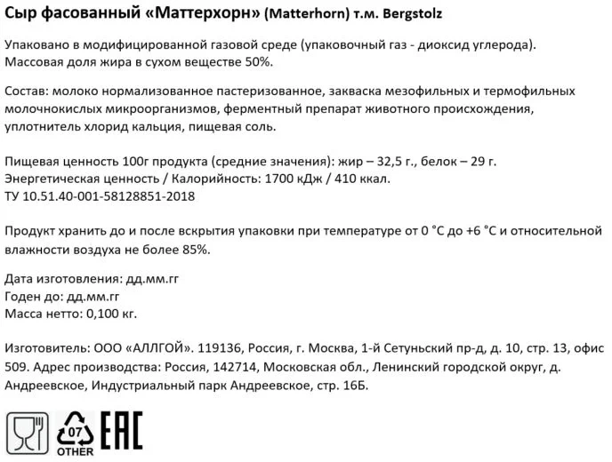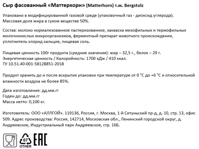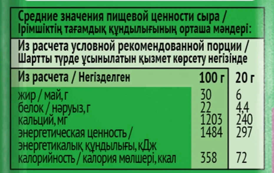 Пастеризованное молоко, соль поваренная пищевая, закваска лиофилизированных культур, молокосвертывающий ферментный препарат микробного происхождения, молочная сыворотка.