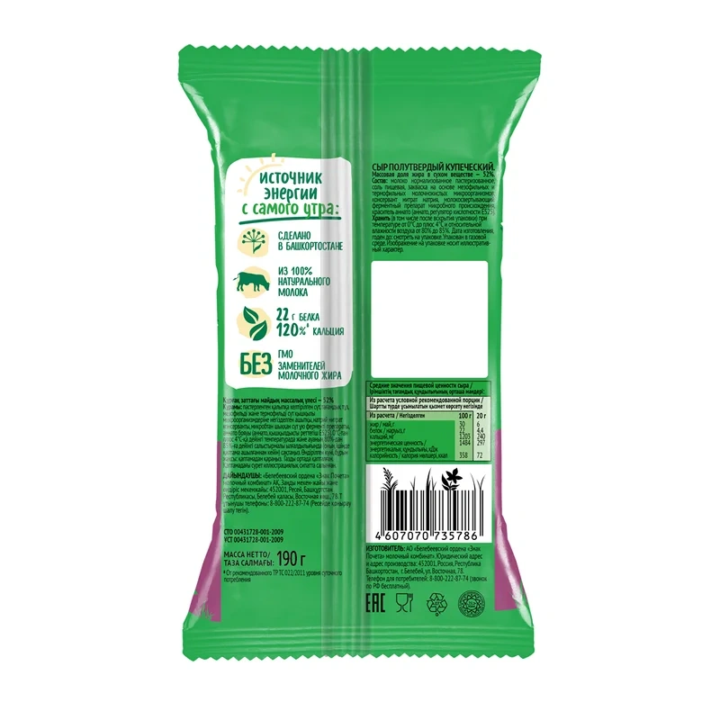 Продукт не содержит растительных жиров, консервантов и искусственных добавок.