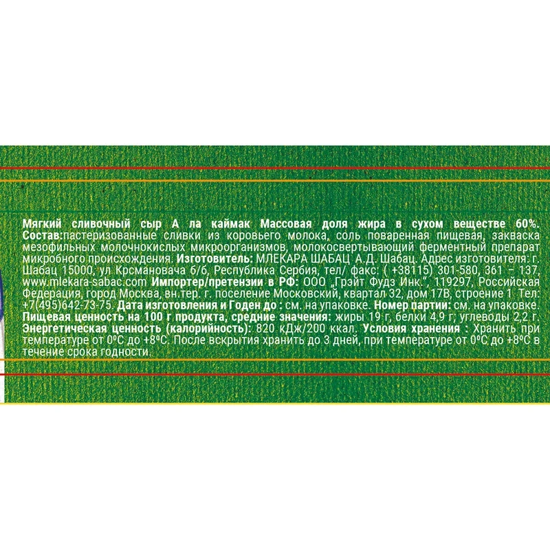 Сыр Mlekara Sabac мягкий а ла каймак 60%, 150г