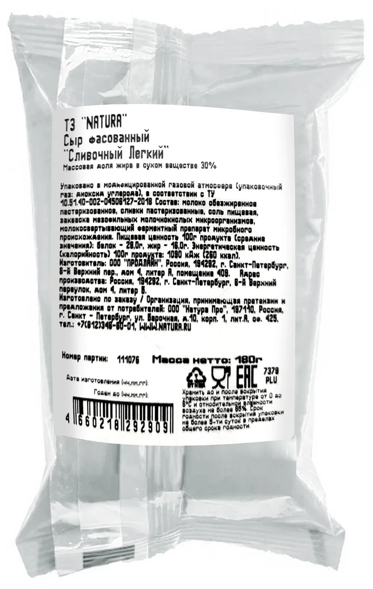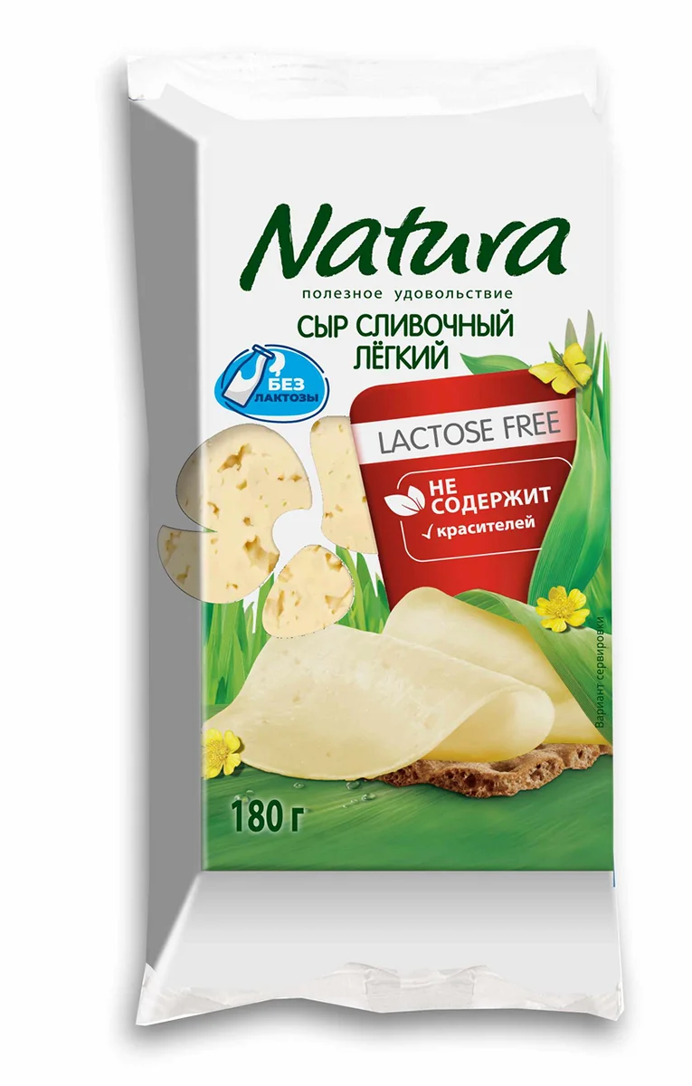 Сыр Natura сливочный безлактозный легкий кусок 30%, 180г