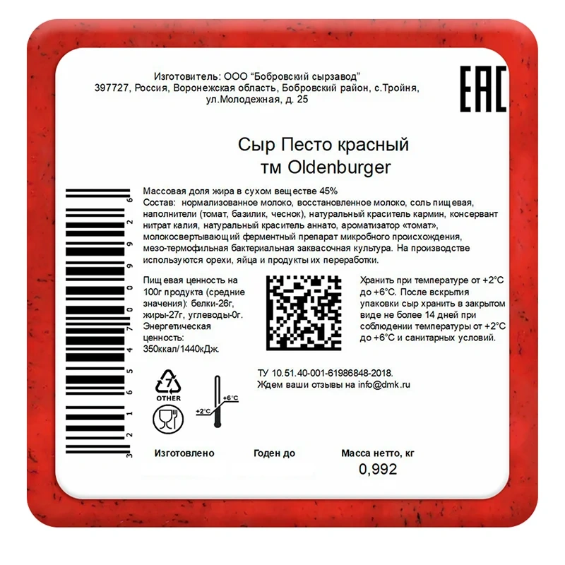 Сыр Песто Oldenburger красный 45%, ~1кг