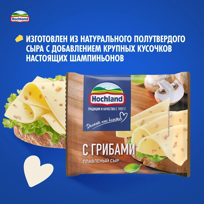 Сыр плавленый Hochland с грибами в ломтиках 45%, 150г