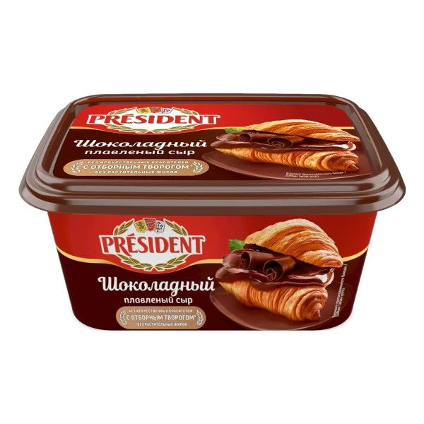 Нежный сливочный сыр плавленый President Шоколадный, 400 г с явно выраженными шоколадными нотками станет незаменимым продуктом в рационе взрослых и маленьких сладкоежек. Он характеризуется сбалансированным составом, имеет мягкую и достаточно густую консистенцию, лишенную комочков, которая позволяет легко намазывать сыр на хлеб. Он также может использоваться в качестве ингредиента при приготовлении кондитерских изделий. Этот десерт не только вкусный, но и полезный для пищеварения.