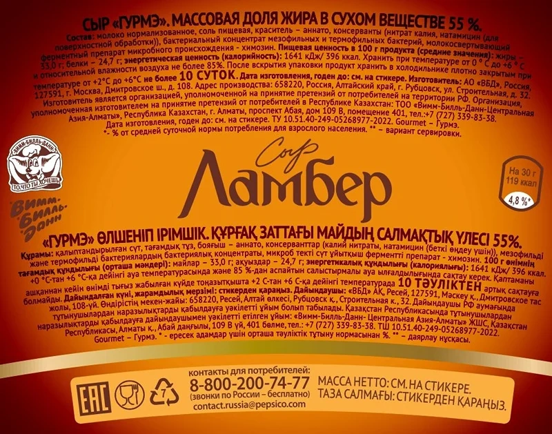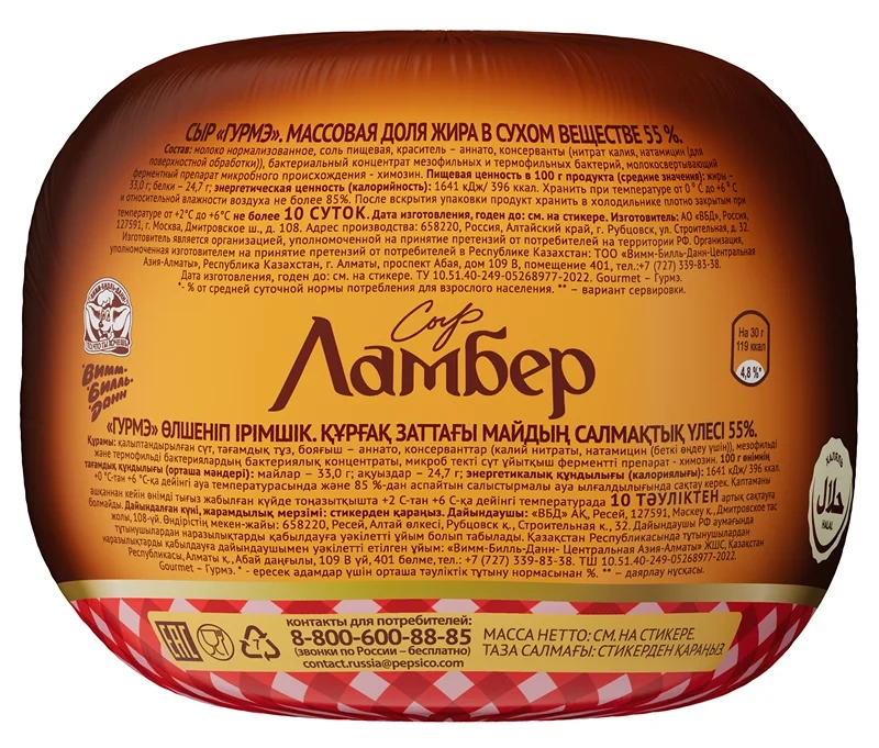 Сыр обладает изумительным сливочным вкусом и мягкой текстурой. В составе продукта содержится в 2 раза меньше жира, что делает его более подходящим для тех, кто следит за своей фигурой.