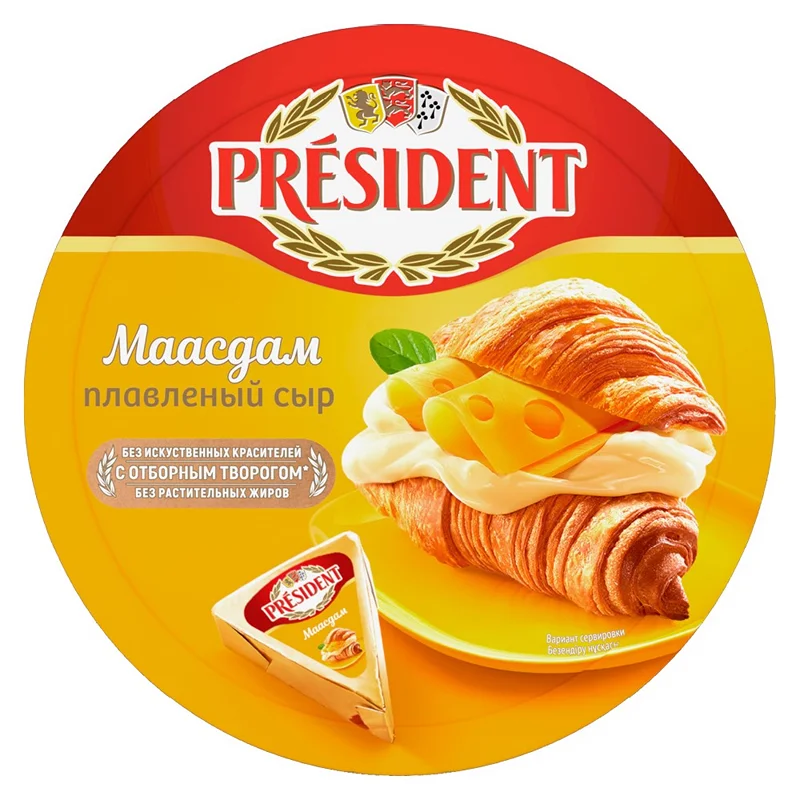 Сыр плавленый President Маасдам 8 треугольников, 140 г БЗМЖ имеет все характерные признаки данного сорта – сладковато-ореховый вкус и нежнейший сливочный аромат в сочетании с расплавленной консистенцией. Сыр является незаменимым источником кальция, фосфора, белка и полезных жиров, поэтому важно добавлять его в рацион ежедневно. Продукт изготовлен из пастеризованного натурального коровьего молока, без добавления пальмового масла и других растительных жиров. Треугольники удобно не только использовать дома, но и брать с собой в дорогу. Продукт изготовлен под строгим контролем качества.