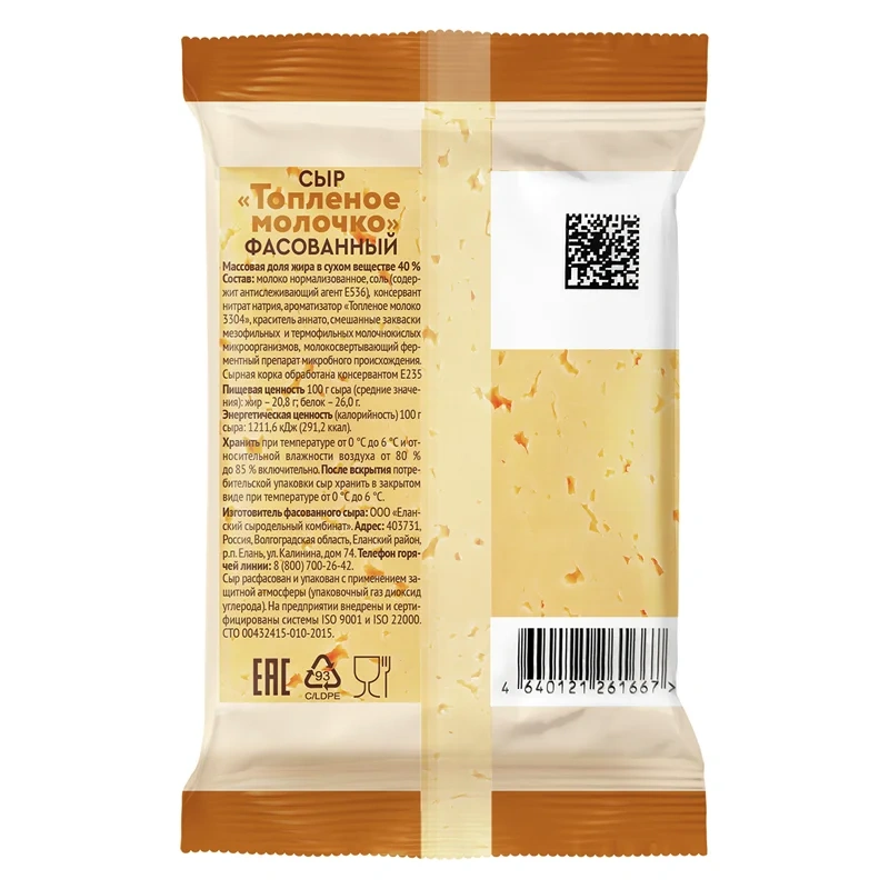 Молоко восстановленное из сухого обезжиренного молока, сыры твердые и полутвердые, содержащие ферментный препарат животного происхождения - лизоцим, продукт переработки яиц, масло сливочное, молочный белок, загуститель Е1450, эмульгаторы цитраты и фосфаты натрия, поли- и пирофосфаты, сухая молочная сыворотка, комплексные пищевые добавки, ароматизаторы, сырный порошок, йогуртовый порошок, усилители вкуса и аромата Е621, Е627, Е631, крахмал кукурузный, соль, агент антислеживающий Е536, консервант сорбиновая кислота, регулятор кислотности лимонная кислота.