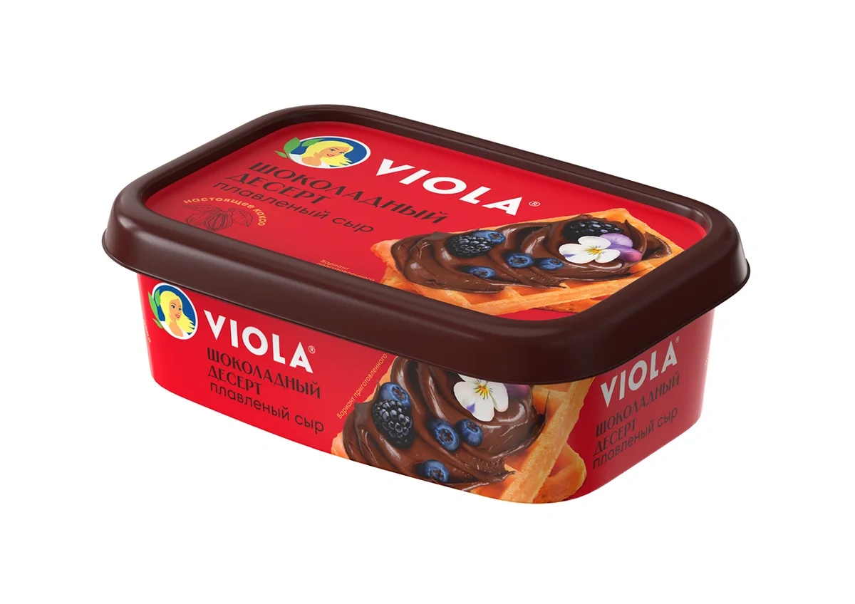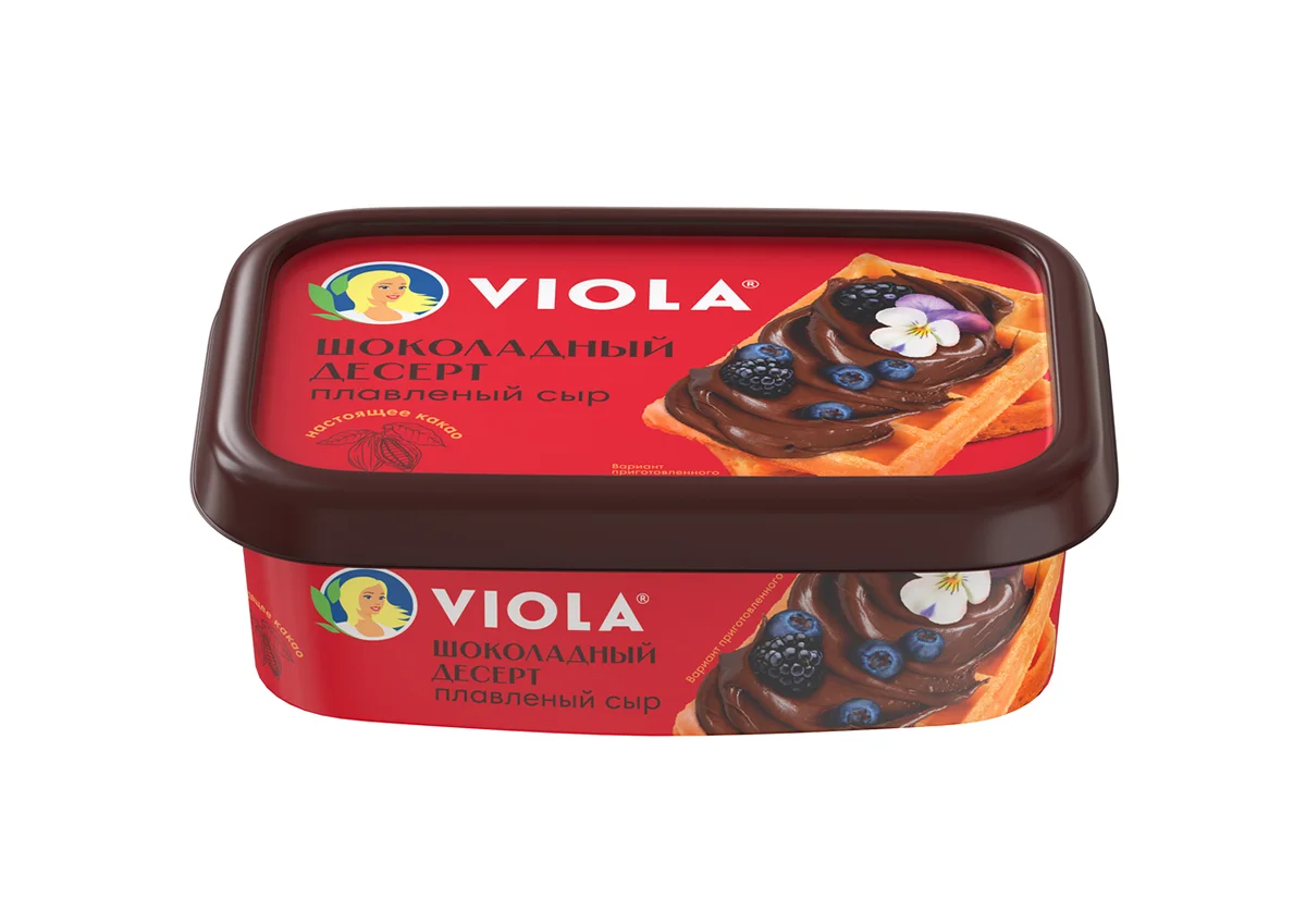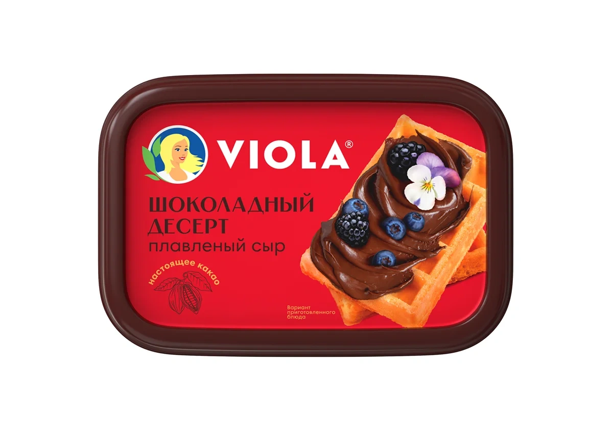 Это нежная, кремообразная консистенция, похожая на шоколадную пасту, но имеющая сбалансированный неприторный вкус темного шоколада и приятный состав (отсутствуют растительные масла и жиры, сахар в составе не на 1 месте, как у шоколадных паст). Плавленый сыр Viola делается только изкачественных ингредиентов посовременной технологии и рецептуре ГОСТ с соблюдением самых высоких стандартов качества от сырья до готового продукта. Производится из твердых и полутвёрдых сортов сыра, сливочного масла и ароматного какао, придающего продукту невероятный вкус и аромат великолепного десерта. Отличается нежной сливочной консистенцией, благодаря которой сыр с легкостью можно намазать на хрустящий крекер, ломтик хлеба или вовсе использовать в качестве соуса для блинчиков и вместо крема для торта.