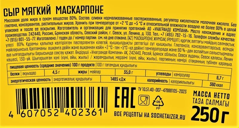 | Стандарт производства | ту 10.51.40-007-47888105-2023 |