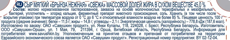 Сыр мягкий Савушкин продукт Sveza Брынза Нежная 45%, 250г представляет собой мягкий сыр с пикантный молочный вкусом, нежной консистенцией, легкой структурой и умеренным содержанием соли. Он обладает нежной текстурой и слегка кисловатым ароматом, характеризующим качественные кисломолочные продукты. Сыр находится в рассоле, идеально сохраняющим первоначальные свойства и свежесть деликатного продукта. С брынзой можно готовить огромное количество блюд, в том числе салаты, первые и вторые, использовать в качестве начинки для выпечки, добавляя в него пряности и ароматные травы.