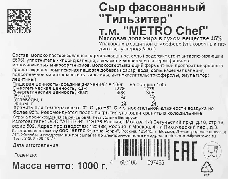 Сыр полутвердый Тильзитер 45% нарезка Metro Chef, 1 кг — сытный и питательный перекус, а также способ разнообразить привычный рацион. Этот продукт с плотной текстурой, нежным молочным вкусом и долгоиграющим чуть сладковатым послевкусием. С сыром можно делать бутерброды и сэндвичи, добавлять его в пиццу, пасту, использовать как начинку для блинчиков или несладких рулетов. Продукт изготавливается из отборного молока, в его составе нет растительных жиров или заменителей молочного жира. Главная особенность данного продукта – его не нужно резать, поэтому его удобно брать с собой на пикник и в поездку.