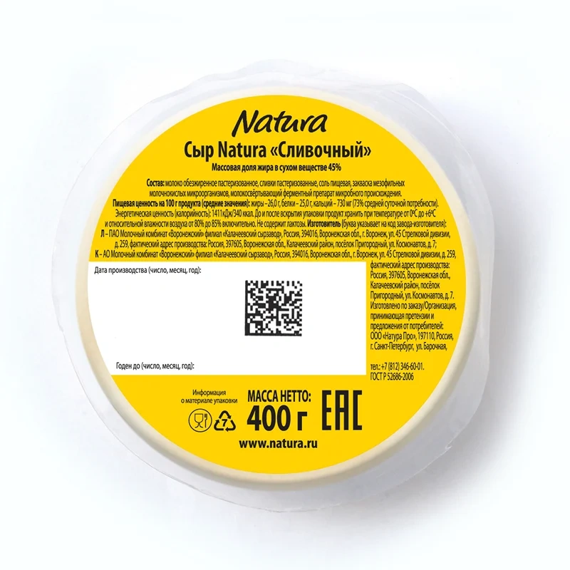 Сыр NATURA полутвердый Сливочный, 400г обладает нежным мягким вкусом, без посторонних ароматов. Сорт идеально сочетается практически с любыми продуктами и напитками. Его можно использовать как ингредиент для самых разнообразных блюд, так и употреблять отдельно в качестве холодной закуски. Продукт в меру соленый, обладает приятной однородной консистенцией.Благодаря специальной технологии вакуумной упаковки, продукт хранится довольно долго, при этом в составе отсутствуют консерванты и красители. Сыр произведен на старейшем датском молокозаводе, по самым высоким и современным стандартам качества.Жирность: 25%.Технология производства: полутвердые.Молоко: коровье.Фасовка: одним куском.Бренд: Arla.Страна: Дания.