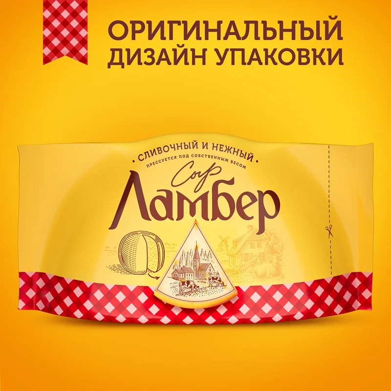 Сыр Ламбер Классический 50% в формате 230 г производится из 100% натурального молока и специальной закваски. Продукт содержит белок и кальций.