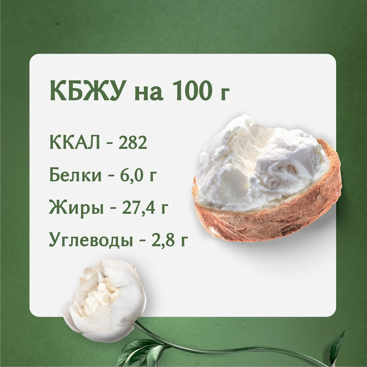 | Энергетическая ценность, ккал/100 г | 282 |