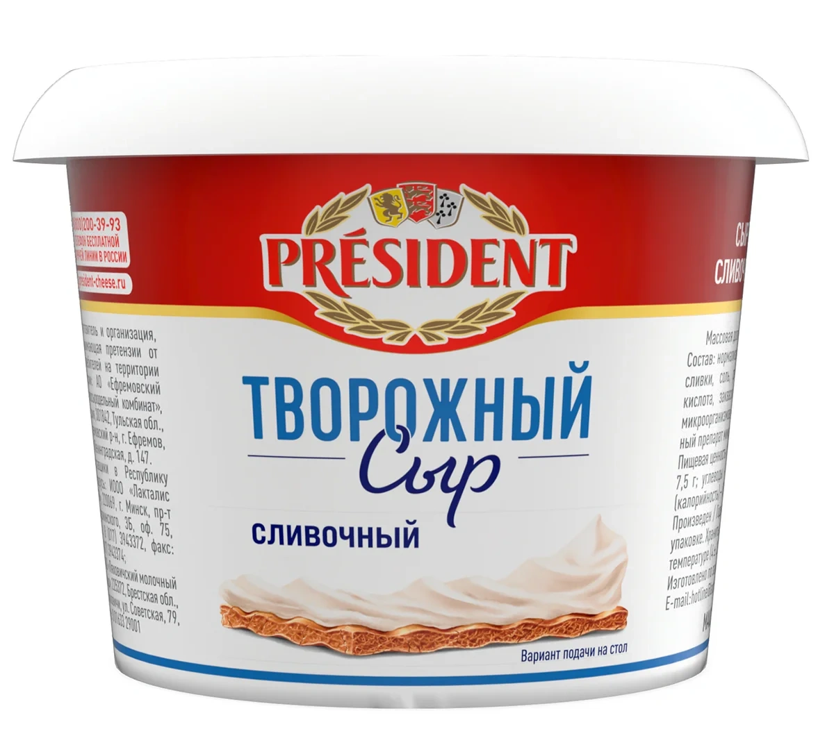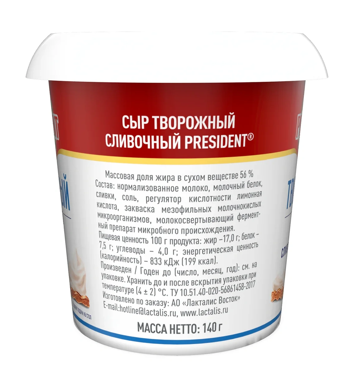 Сыр творожный President сливочный 56%, 140г