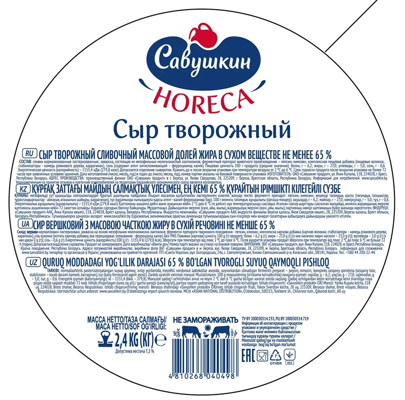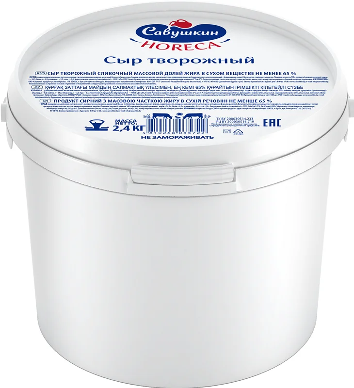 Сыр творожный Савушкин продукт Сливочный 65%, 2.4кг
