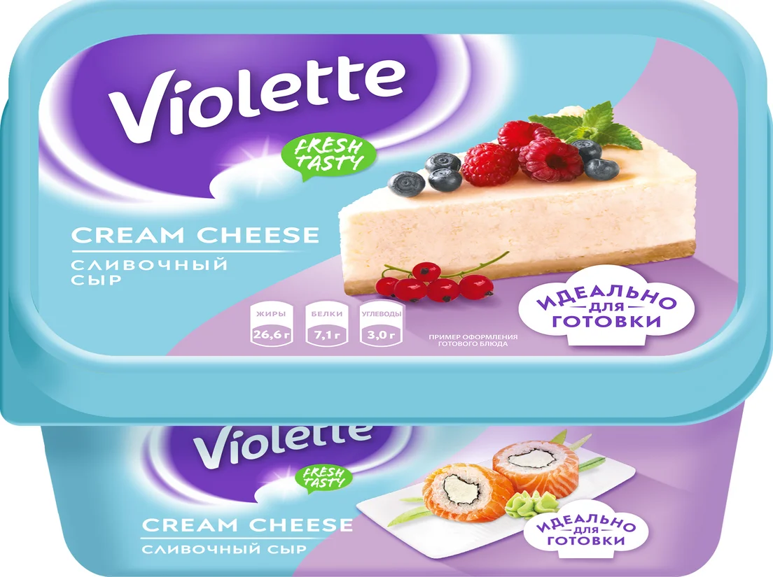 Творожный сливочный сыр Виолетта без заменителя молочных жиров, 400 г изготовлен на основе цельного молока, натуральных сливок. В составе отсутствуют консерванты, искусственные красители, растительные жиры и сухое молоко. Крем-чиз подойдет для приготовления американского чизкейка, роллов, суши. Он также насыщает сливочным вкусом разные кремовые соусы и подливы, кондитерские крема для тортов, десертов, капкейков. Аппетитная основа для холодных закусок, гренок, тарталеток упакована в удобный для использования и переноски пластиковый контейнер с герметичной крышкой.