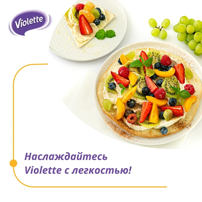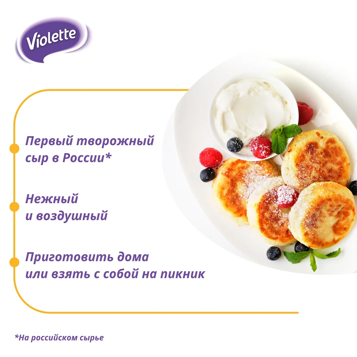 Violette Сливочный— самый воздушный творожный сыр. Создан из натурального молока и сливок, именно поэтому у него такой насыщенный сливочный вкус и легкая текстура. Сыр прекрасно сочетается с поджаренными тостами на завтрак и придает нежную текстуру десертам. Идеально подходит и для приготовления легких закусок для праздника — канапе, рулетиков и тарталеток. Сыр творожный Violette представлен на рынке уже 15 лет и является золотым призером конкурса Молочная гордость России. Для изготовления сливочного сыра используется лучшее отечественное сырье от проверенных поставщиков, а сам продукт проходит тщательный контроль на всех этапах производства. Все это позволяет сохранить уникальный вкус сыра Violette и радовать вас неизменно высоким качеством. Сыр сливочный от Violette cделает любые блюда оригинальнее — будь то крекер со свежим огурцом или брускетта с инжиром. Просто добавьте сыр творожный в ваш любимый рецепт и дайте волю фантазии. Violette — легкое наслаждение! *В линейке вкусов бренда Violette.