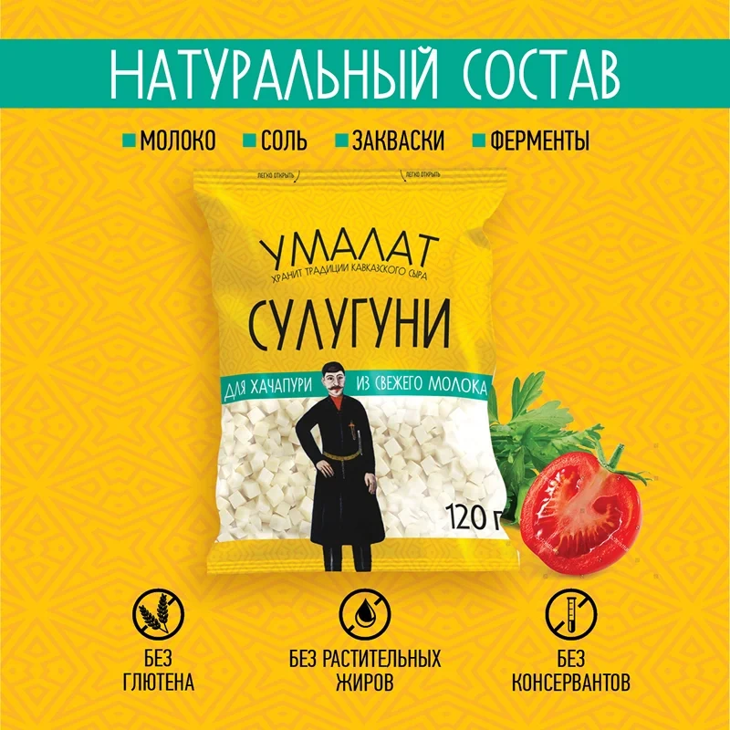 Сыр Умалат Сулугуни для хачапури кубики нарезка 45%, 120г