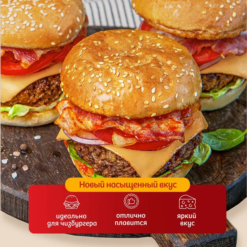 Его отличает яркий сливочный вкус с присущей сорту Чеддер кислинкой, богатый аромат и пикантное послевкусие.