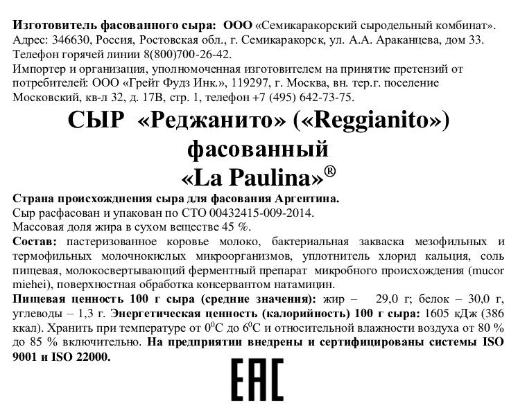 Молоко коровье пастеризованное, соль, закваска мезофильных и термофильных молочнокислых микроорганизмов, уплотнитель - хлорид кальция, молокосвертывающий ферментный препарат микробного происхождения, пищевая добавка: краситель - аннато.