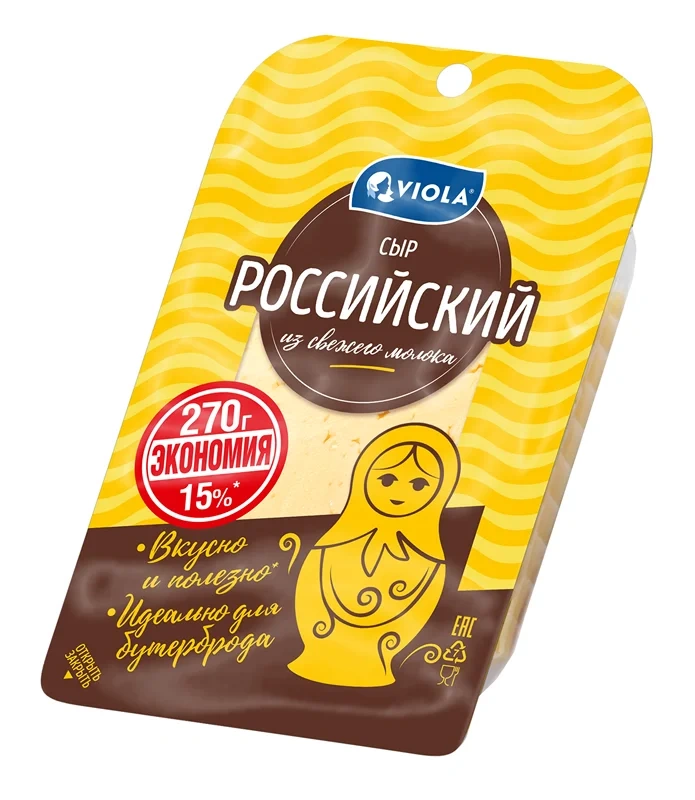 Сыр Viola Российский полутвердый нарезка 50%, 270г