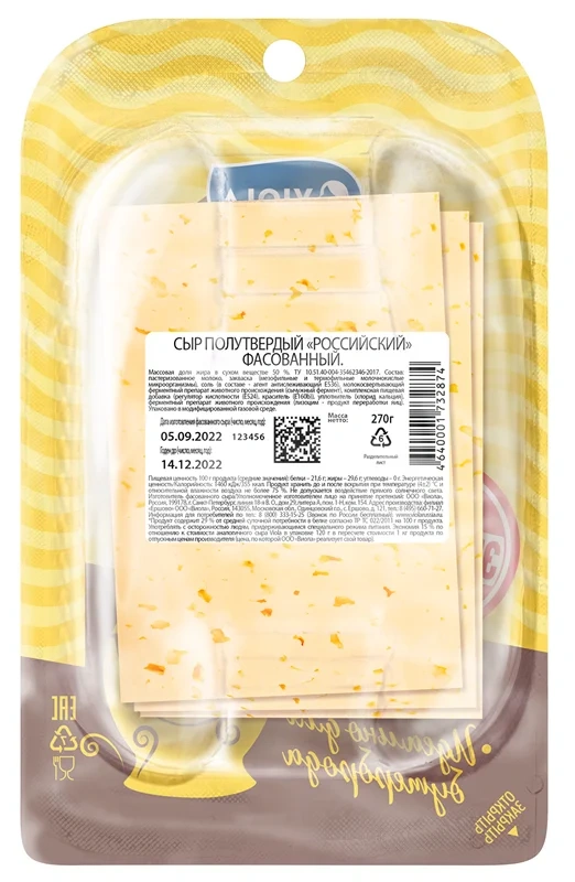 Прекрасно дополняет свежие салаты и мясные блюда. У него насыщенный сливочный вкус, приятный аромат и нежное послевкусие. Слайсерная нарезка представляет собой тонко нарезанные ломтики сыра, толщина которых рассчитана так, чтобы максимально передать вкус сыра. Это натуральный продукт, который не содержит растительных заменителей жира. Как и всякий натуральный сыр, это источник кальция и фосфора, которые необходимы для поддержания здоровья костей и нормализации работы головного мозга, а также молочного протеина, который поддерживает работоспособность мышц. По-настоящему нежный сливочный вкус сыра прекрасно подойдет для ежедневного здорового и сбалансированного питания. Сыр Российский используют как самостоятельную закуску, а также широко применяют в кулинарии в качестве добавки в различные блюда, в том числе требующие температурной обработки. Этот сыр идеально дополнит бутерброды и сэндвичи.