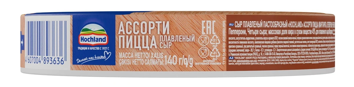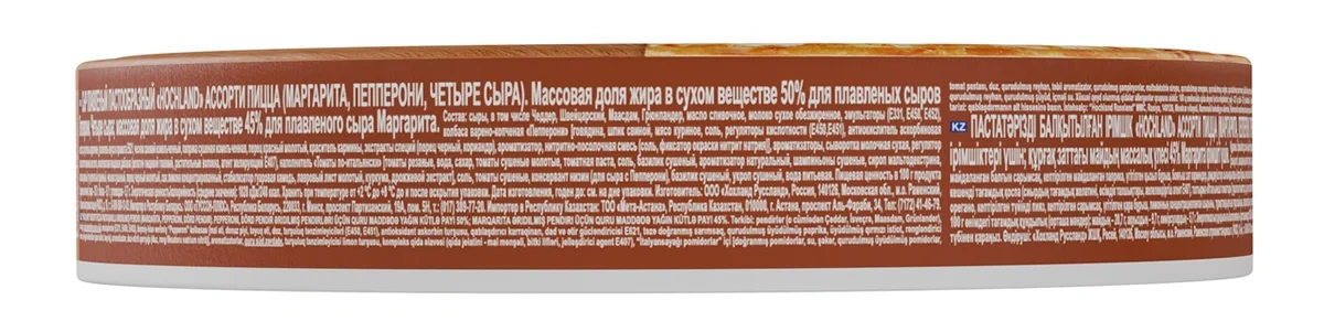 Вода питьевая, масло кокосовое рафинированное, загуститель дикрахмаладипат ацетилированный, крахмал картофельный, соль, ароматизатор сыр Моцарелла, краситель бета-каротин, консервант сорбиновая кислота.