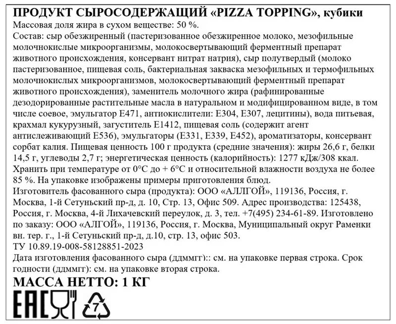 | Стандарт производства | ту 10.89.19-008-58128851-2023 |